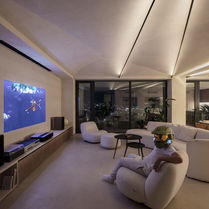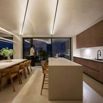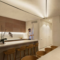 Natural materials were used in the design of the apartment. The environment created by the cream-colored walls is complemented by various plants, stone and wooden elements. In order to avoid visual noise, there are no unnecessary objects, things, furniture in the house, minimal solutions and colors are used.